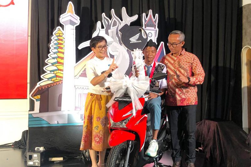 Beasiswa juga diberikan bagi peserta yang aktif di sosial media dan mendapatkan poin tinggi di Honda Riding Trainer (HRT) Challenge, diraih oleh Adnan Kayza asal SMKN2 Pangkal Pinang.