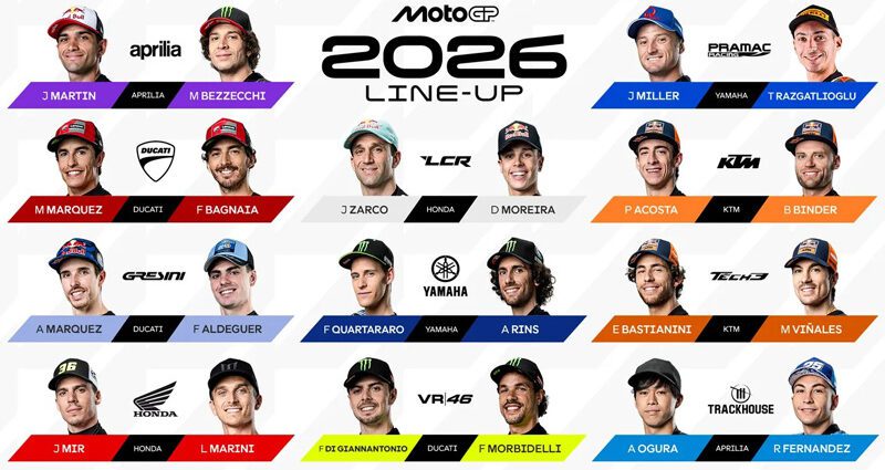 MotoGP musim 2025 masih menyisakan empat musim lagi. Sang juara pun telah ditahbiskan, yakni Marc Marquez (Ducati Lenovo). Namun, aura MotoGP 2026 sudah tak sabar untuk dikuak. Kabar pun memanas usai Dorna mengumumkan daftar pembalap MotoGP 2026.