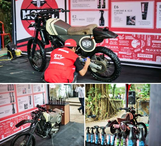 Lalu ada Motorcycle Wash Show menggunakan rangkaian produk MC Care (C1 Chain Clean, M1 Helmet & Visor Clean, M2 Helmet Interior Clean, E4 Perfect Seat, E5 Shine & Go, E6 Chrome & Alu Polish, E11 Matte Surface Clean).