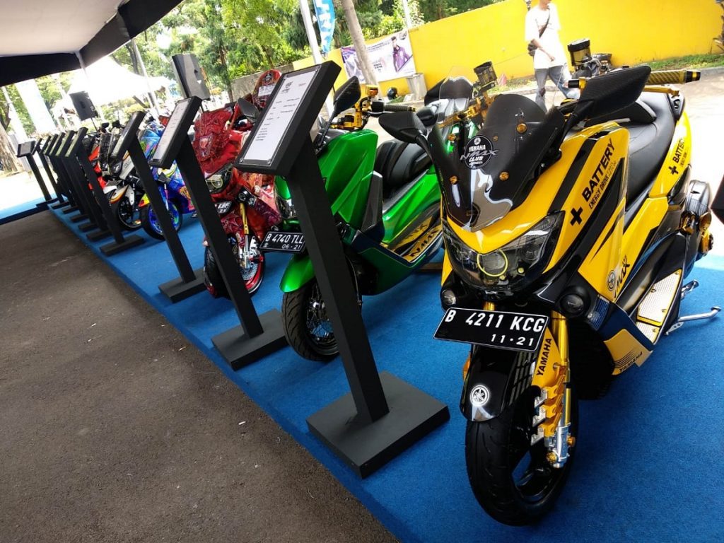 BEKASI – MAXI Yamaha dalam balutan modifikasi hadir di pusat kuliner Kota Bekasi, Melimelo di Harapan Indah pada Sabtu (17/11) menghadirkan 40 skuter.