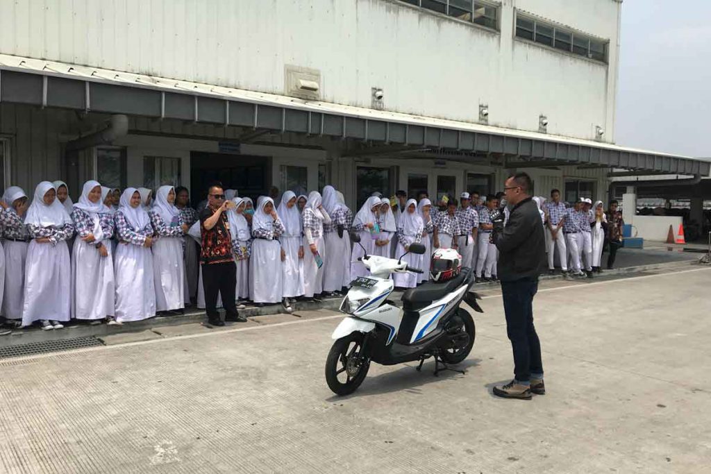 Para pelajar juga akan diberikan safety riding demo agar peserta lebih memahami potensi bahaya saat berlalu lintas. Tidak hanya itu saja, Suzuki juga memperkenalkan berbagai fitur keselamatan dari motor dan mobil serta segala fungsinya.