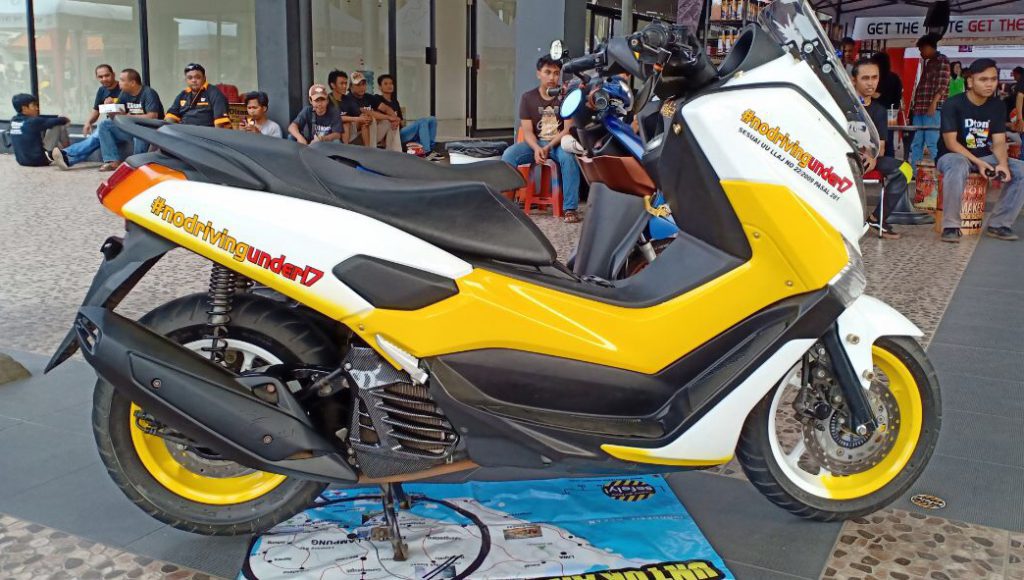 Selain pengecatan yang rapih, NMax yang dilabur warna putih-kuning ini menang karena punya tema yang kuat. Fariz mengusung konsep ‘Motor Bukan untuk Anak <17 Tahun’ yang memang digalakkan oleh NMax-XMax Riders Bekasi.