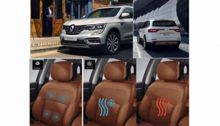 Di bagian interior, New Koleos kini dilengkapi fitur kursi pijat yang terletak pada kursi pengemudi, dapat diatur menggunakan layar sentuh di Head Unit Koleos, dapat diatur sampai 3 (tiga) type pemijatan.