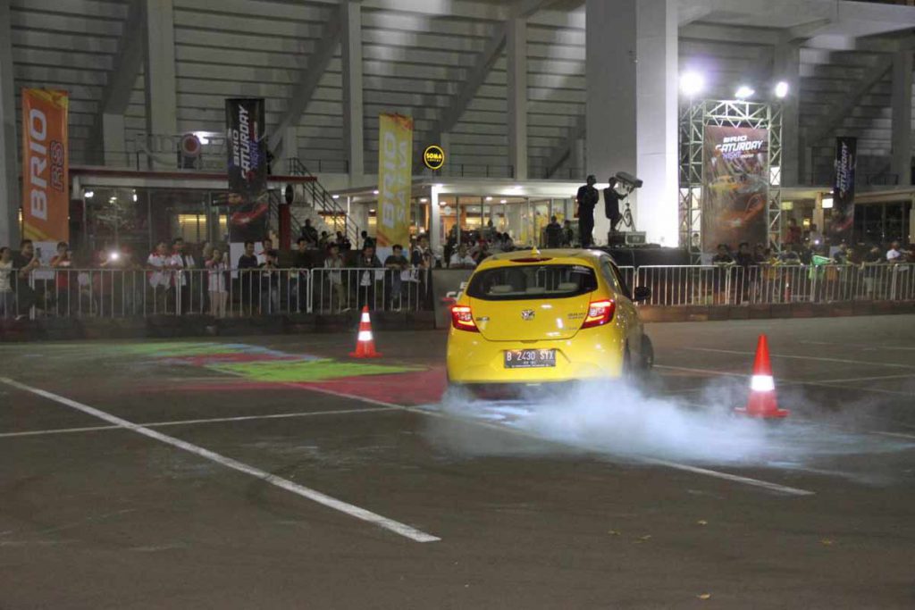 JAKARTA – PT Honda Prospect Motor menggelar seri perdana dari kompetisi slalom bertajuk Brio Saturday Night Challenge (BSNC) telah usai, di area parkir Stadion Akuatik Senayan, Sabtu (22/6).