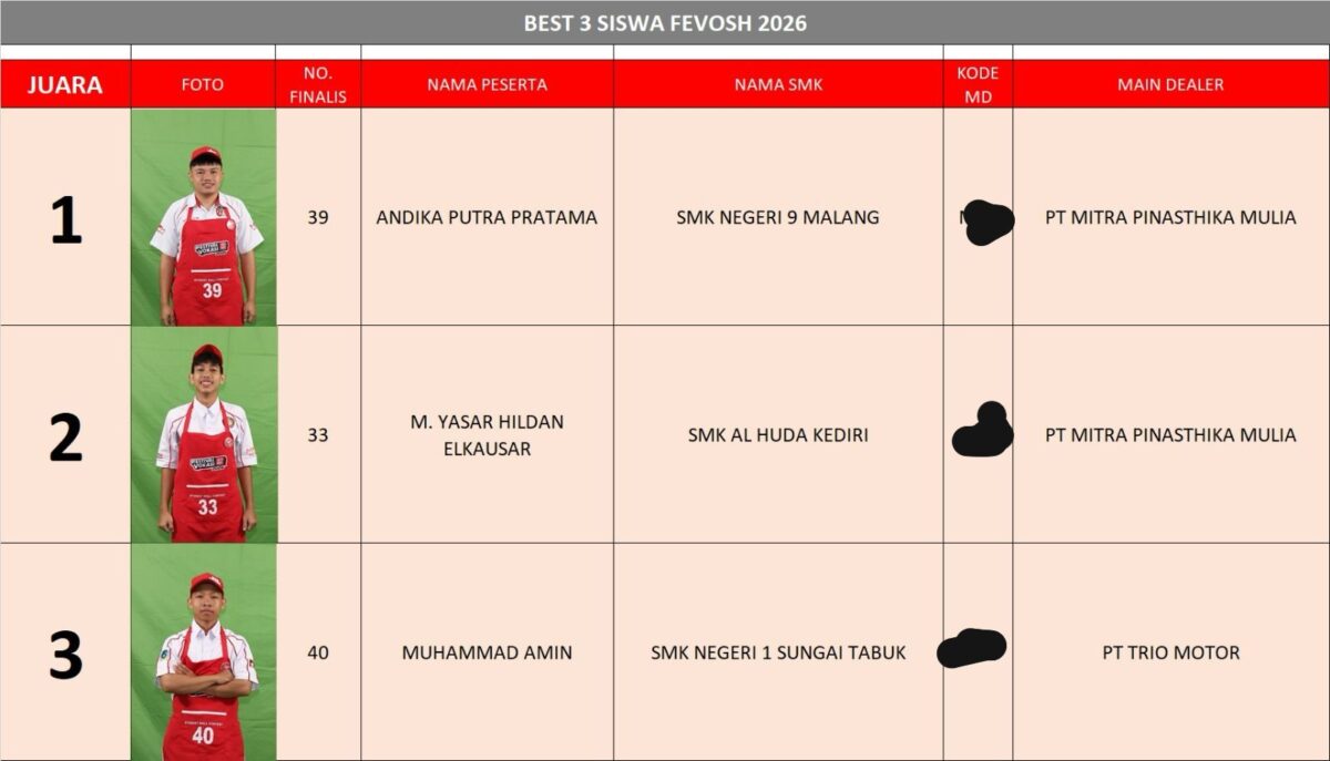 Tak heran jika ajang ini menarik minat 30.180 peserta yang terdiri dari 26.736 siswa dan 3.444 guru dari 699 SMK Mitra Binaan Astra Honda di seluruh Indonesia. FeVoSH 2026 diselenggarakan secara berjenjang sejak September 2025 hingga Februari 2026.