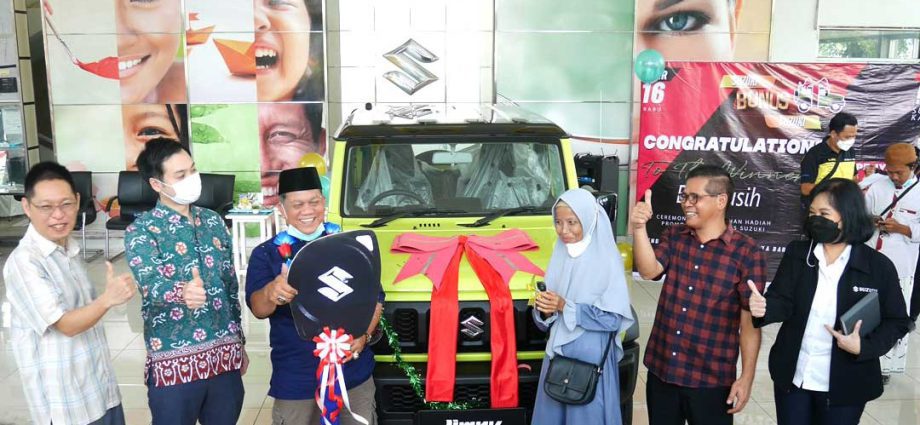 Karawang – Setelah menyelenggarakan program promosi Suzuki Bonus Suzuki yang berlangsung dari Desember 2021 sampai dengan Februari 2022, PT Suzuki Indomobil Sales (PT SIS) melakukan acara penyerahan hadiah utama 1 unit Jimny kepada pemenang di dealer Restu Mahkota Karya (RMK) Karawang pada Rabu (16/03) lalu.