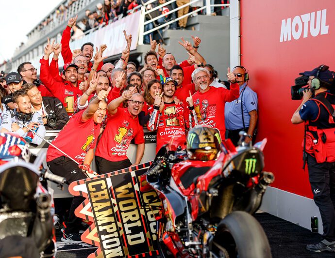 JAKARTA – Kejayaan pembalap Ducati di musim balap 2023 ternyata bukan hanya di ajang MotoGP saja. Ducati Course juga merajai balapan dunia lainnya, seperti WorldSBK dan WorldSSP. Yang pertama, pembalap Ducati menjadi juara dunia MotoGP 2023 melalui Francesco Bagnaia yang mengendarai Ducati Desmosedici GP bersama tim Ducati Lenovo. Pecco demikianContinue Reading